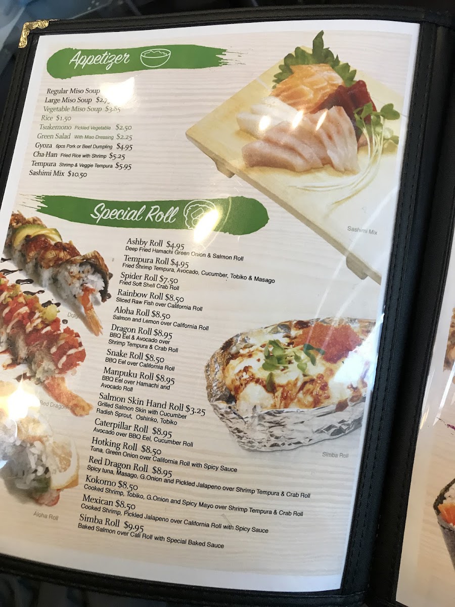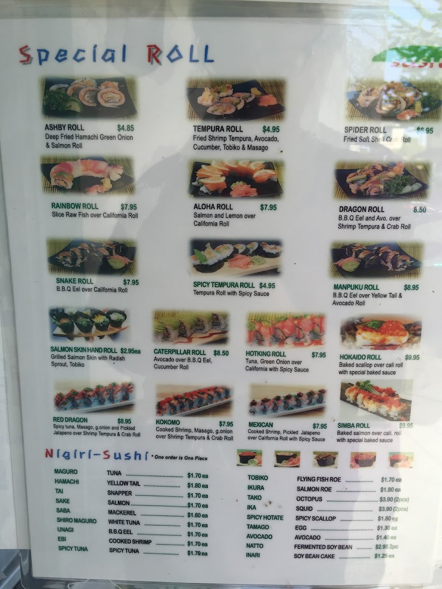 For those looking to indulge in specialty rolls, Manpuku offers several exciting choices. The Ashby Roll (priced at $10.95) features a flavorful combination that is sure to impress, while the Tempura Roll ($9.95) brings a delightful crunch to your palate. If you're in the mood for something more adventurous, the Spider Roll ($10.50) with soft-shell crab is a must-try. The Rainbow Roll ($11.50) adds a colorful and fresh touch to the experience, while the Aloha Roll ($10.50) offers a tropical twist, combining various fresh ingredients for a truly unique flavor.
